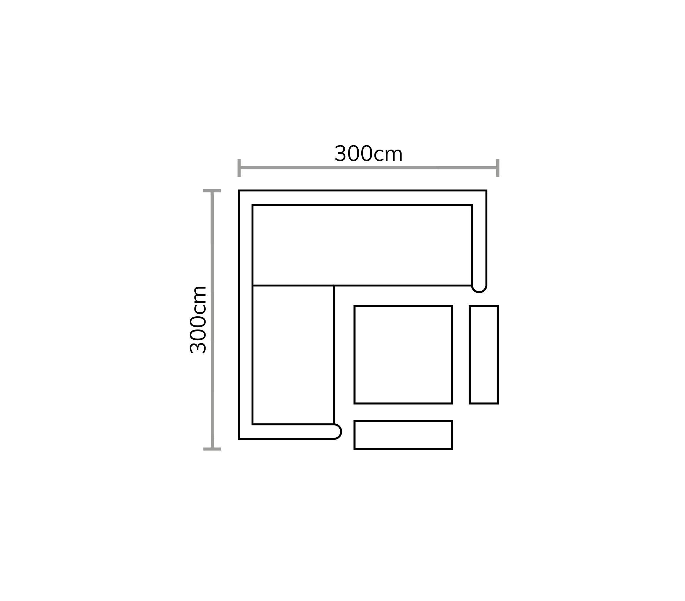 Sofa (per side) – D:85CM, H:75CM, W:300CM