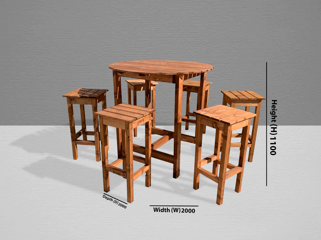 - 6 x Stools & 1 x Circular High Table (Table 4 x bolts to self-assemble)