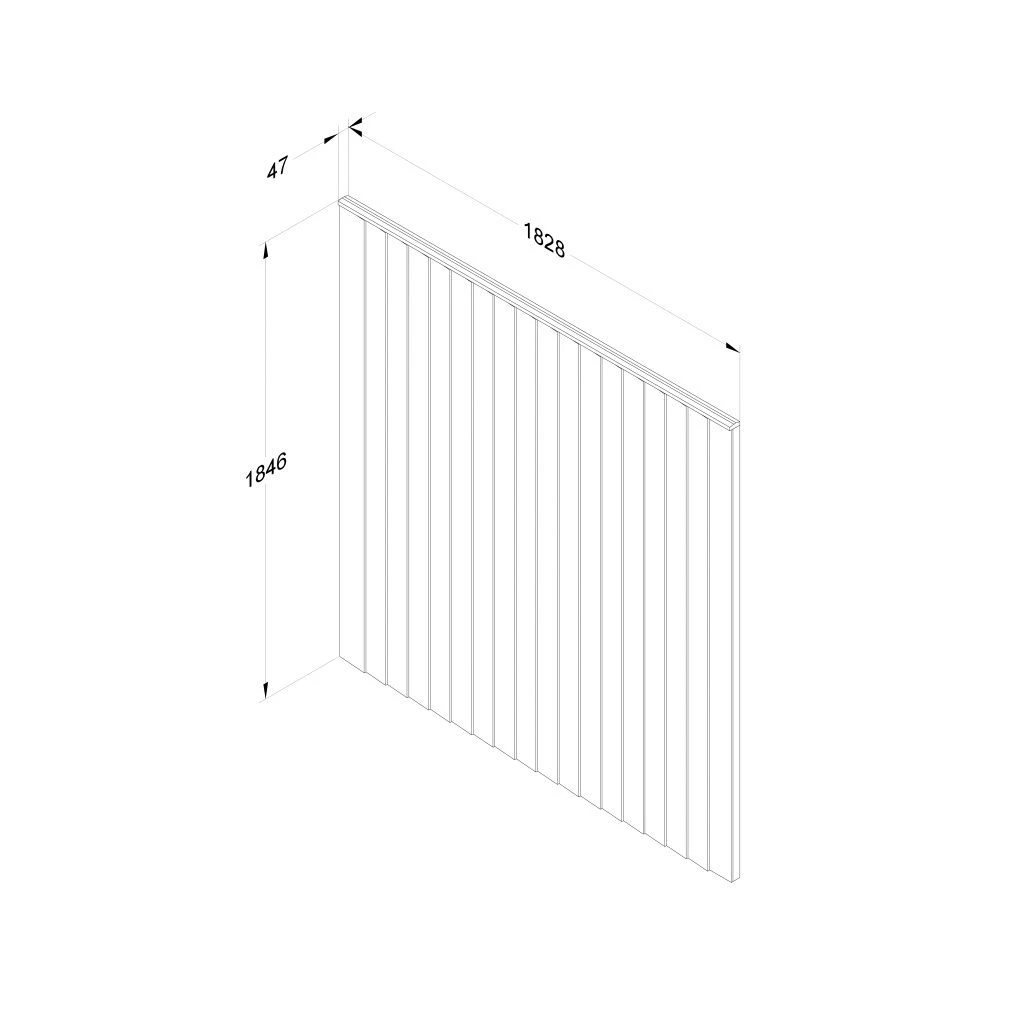 It features thick overlapping square cut 8mm boards, arranged vertically and mounted to a perimeter frame to make an attractive looking panel. The durable 6ft panels are reinforced with two 45mm central batten on the back and are finished with a profiled panel cap.