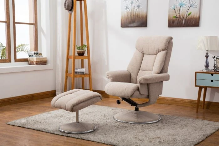 The well known and agreeable Biarritz Fabric Swivel Recliner is pleasantly upholstered in a hardwearing texture Upholstery. This model has been carefully created to deliver an agreeable and strong chair seat, giving quality, strength, preeminent solace and top-notch workmanship. The Biarritz has turned out to be an exceptionally prominent chair in the GFA run, because of the cost as well as mostly down to the solace of this chair. It has an adequate seat width and profundity, but on the other hand, is planned with a decent back stature. This model likewise has a strong upholstered round base structure which offers additional dependability when leaning back. The Biarritz swivel chair is provided with a coordinating complimenting stool included with the seat. This chair is easy to lean back. By reclining your body weight will lean back the seat and, as you fit forward, the seat will come back to a unique upright position. This model is fitted with a lean back tensioner under the front of the seat pad.