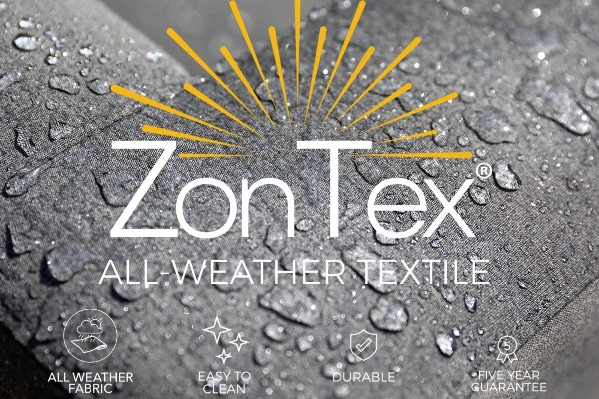– ZonTex® All-Weather Fabric is made from Dolution Dyed Acrylic Fabric which is water repellent, stain resistant and UV resistant