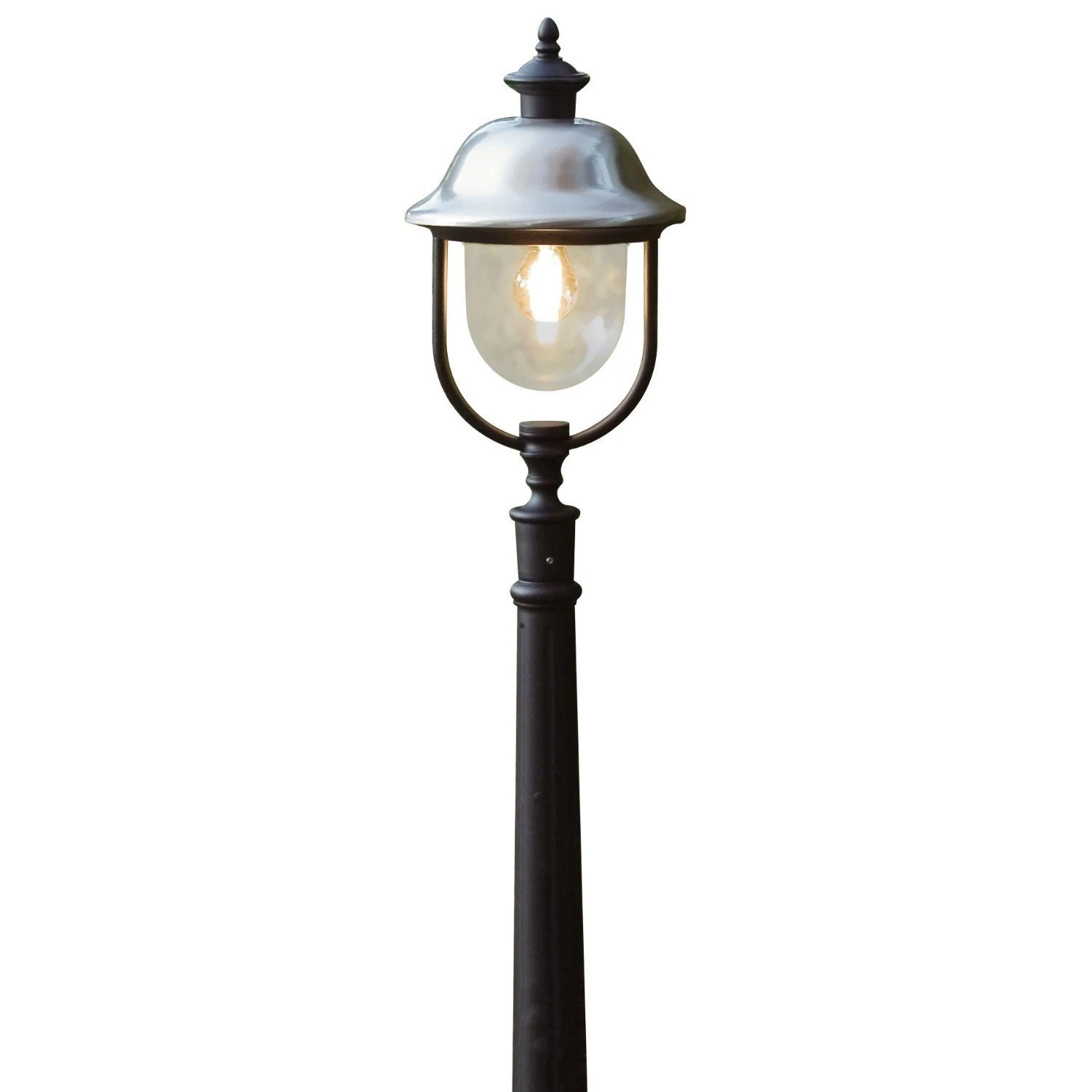 Part of the Konstsmide Parma range a traditional style with a modern twist. The Matt Black construction is complemented by the Stainless Steel Hat.
