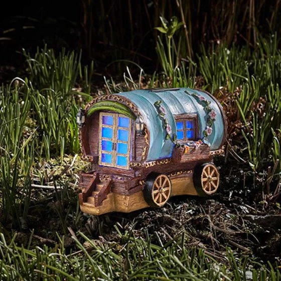 - Solar powered hand painted collectible automatically illuminates at night